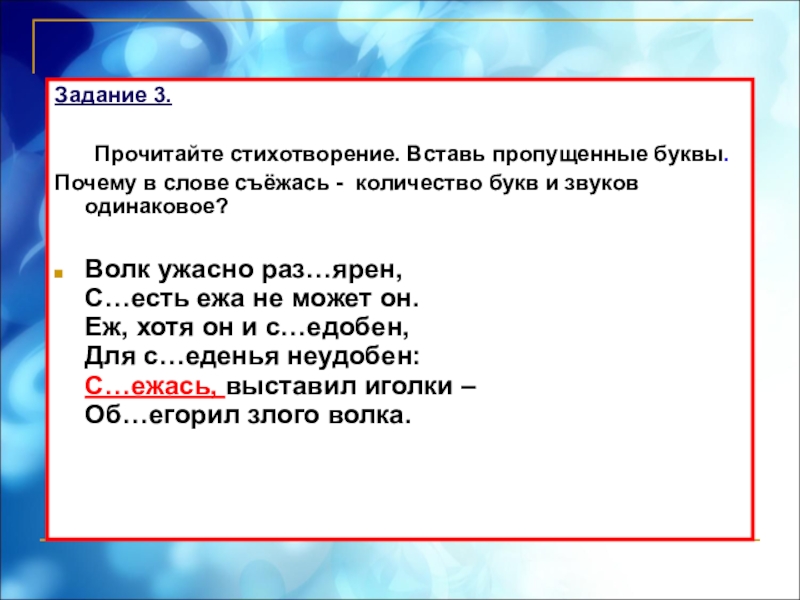 Прочитайте стихотворение. Вставь пропущенные буквы.