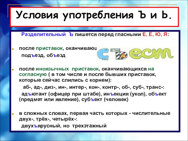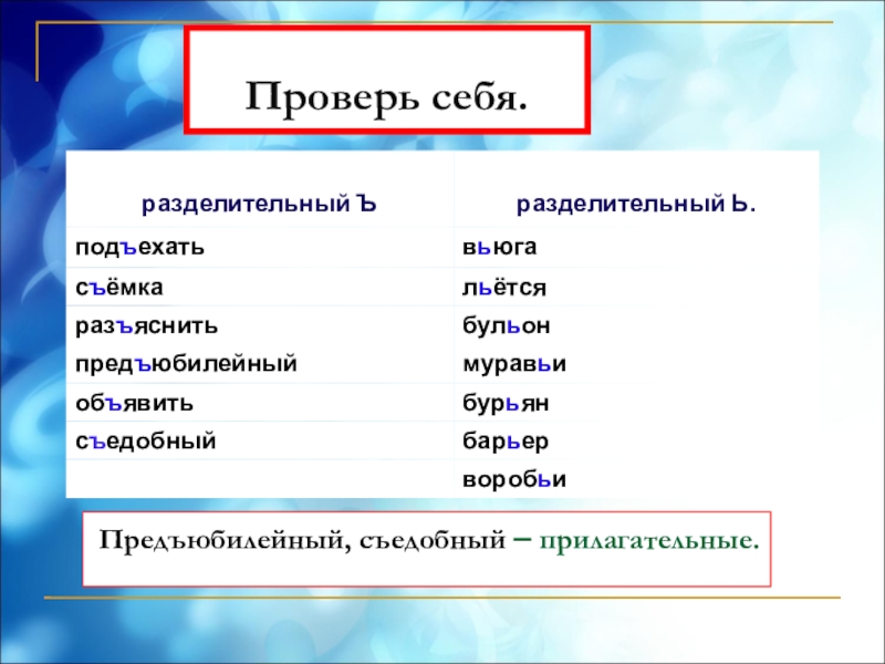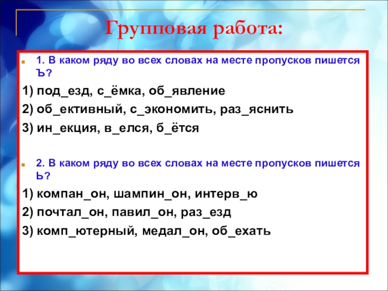 Объясни почему надо вставить разделительные Ъ или Ь.