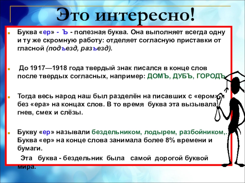 Буква «ер» - Ъ - полезная буква. Она выполняет