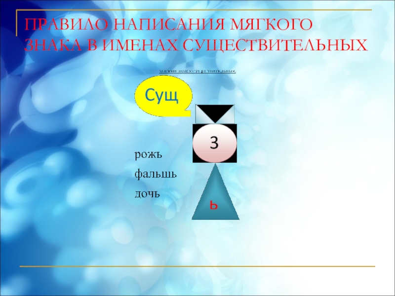 Слайд 5ПРАВИЛО НАПИСАНИЯ МЯГКОГО ЗНАКА В ИМЕНАХ СУЩЕСТВИТЕЛЬНЫХ