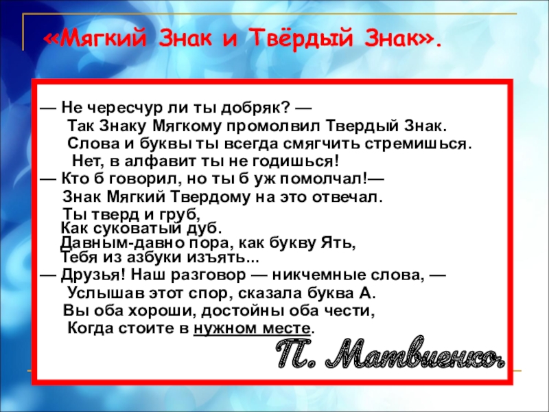 Слайд 3 «Мягкий Знак и Твёрдый Знак».