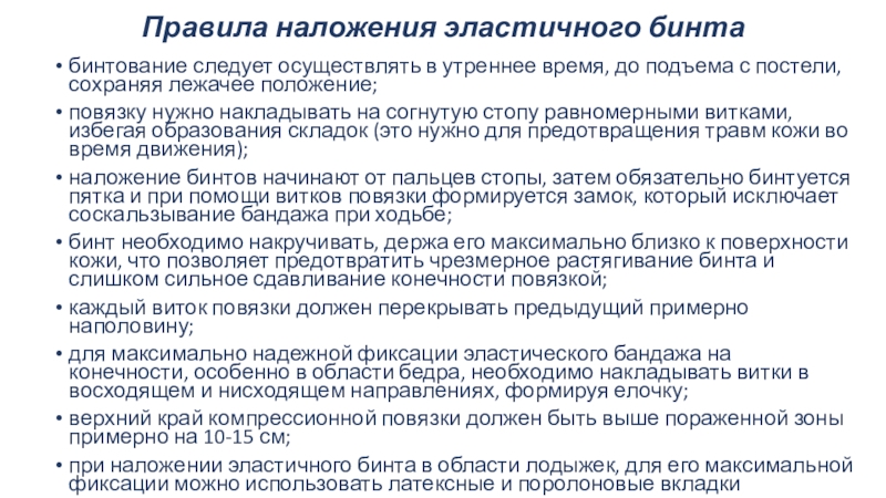 Слайд 10Правила наложения эластичного бинта
