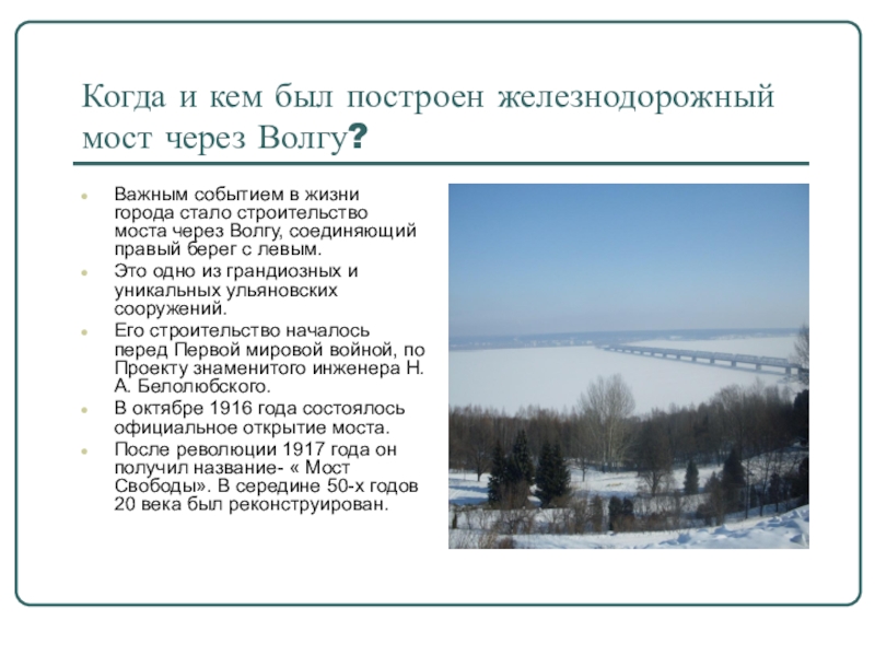 Слайд 17Когда и кем был построен железнодорожный мост через Волгу?