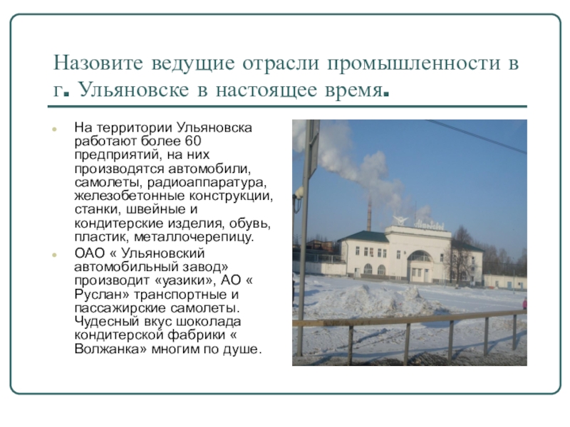 Слайд 23Назовите ведущие отрасли промышленности в г. Ульяновске в настоящее время.
