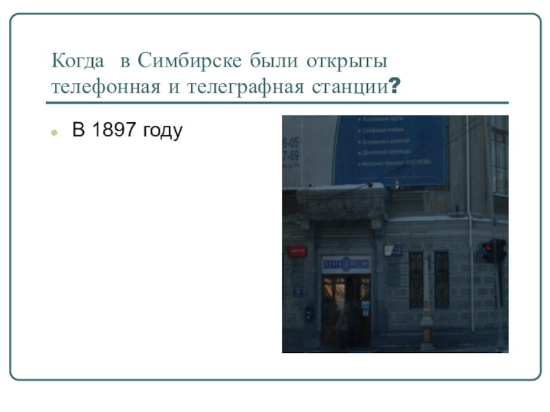 Слайд 15Когда в Симбирске были открыты телефонная и телеграфная станции?