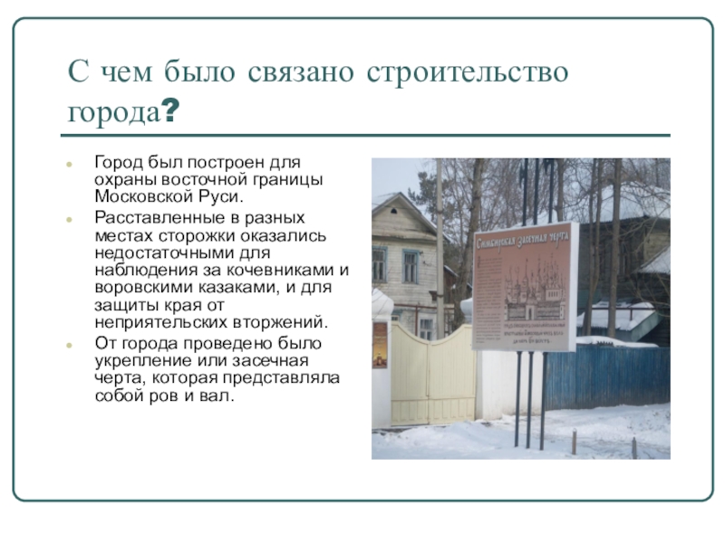 Слайд 3С чем было связано строительство города?