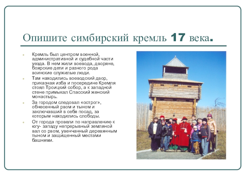 Слайд 8Опишите симбирский кремль 17 века.