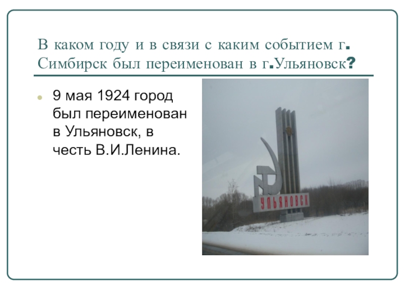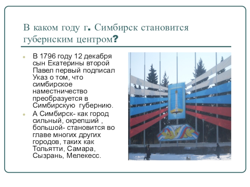 Слайд 18В каком году и в связи с каким событием г.Симбирск был