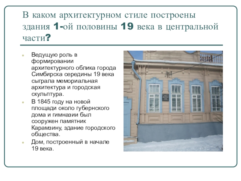 Слайд 28В каком архитектурном стиле построены здания 1-ой половины 19 века в