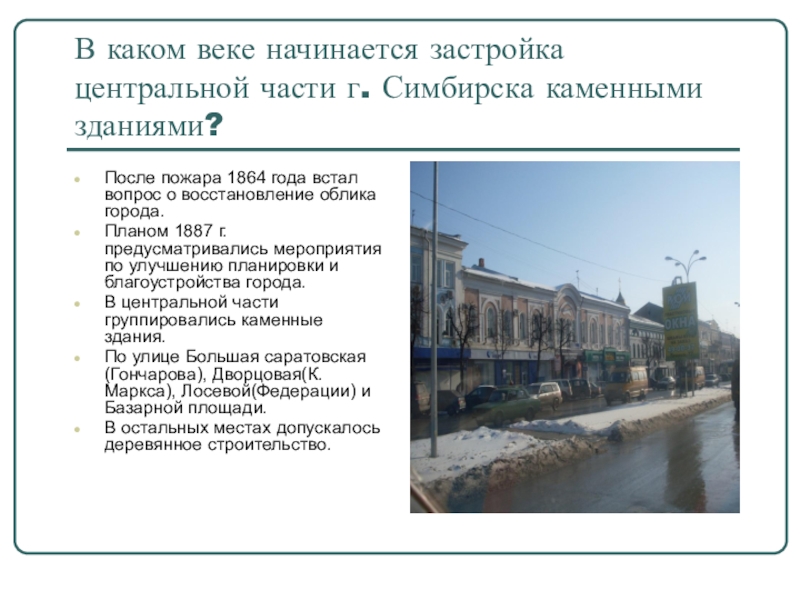 Слайд 27В каком веке начинается застройка центральной части г. Симбирска каменными зданиями?