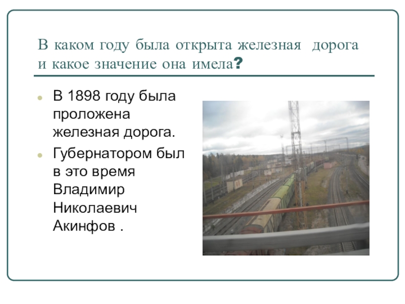 Слайд 12В каком году была открыта железная дорога и какое значение она