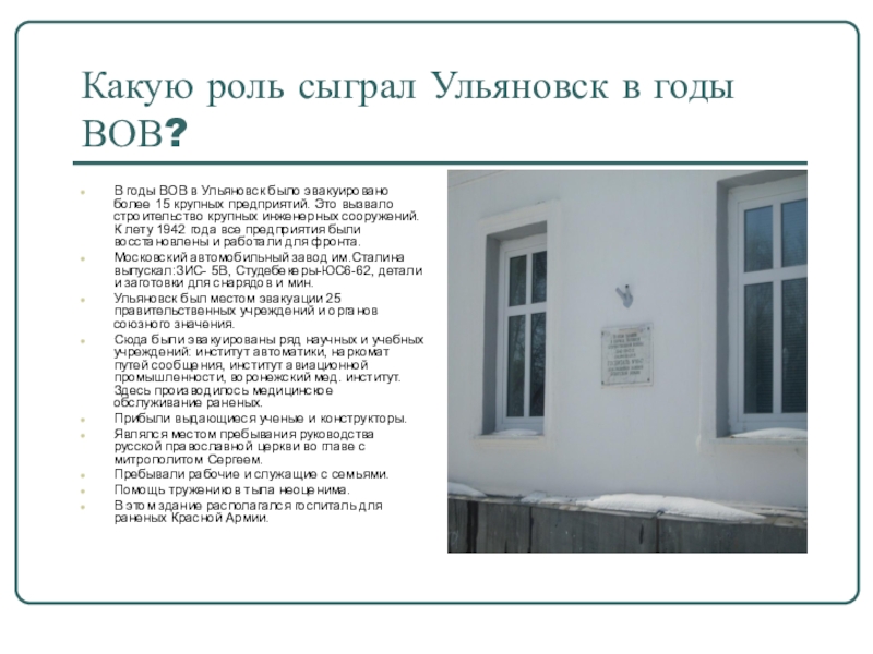 Слайд 22Какую роль сыграл Ульяновск в годы ВОВ?