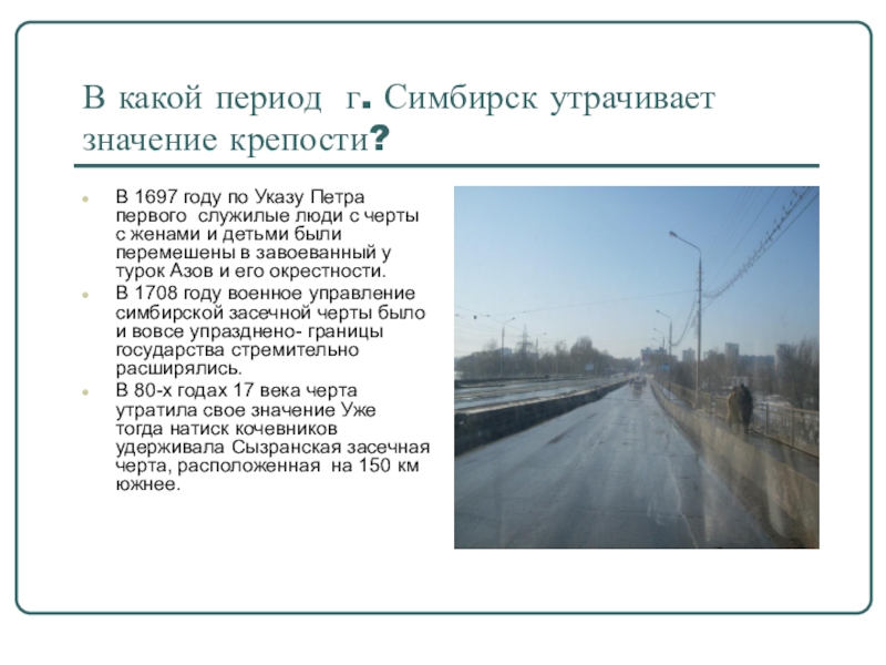 Слайд 9В какой период г. Симбирск утрачивает значение крепости?