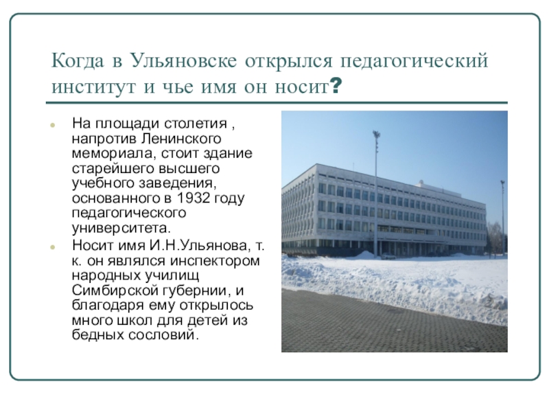 Слайд 21Когда в Ульяновске открылся педагогический институт и чье имя он носит?