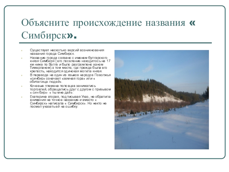 Слайд 7Объясните происхождение названия « Симбирск».