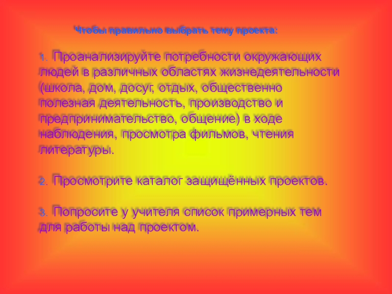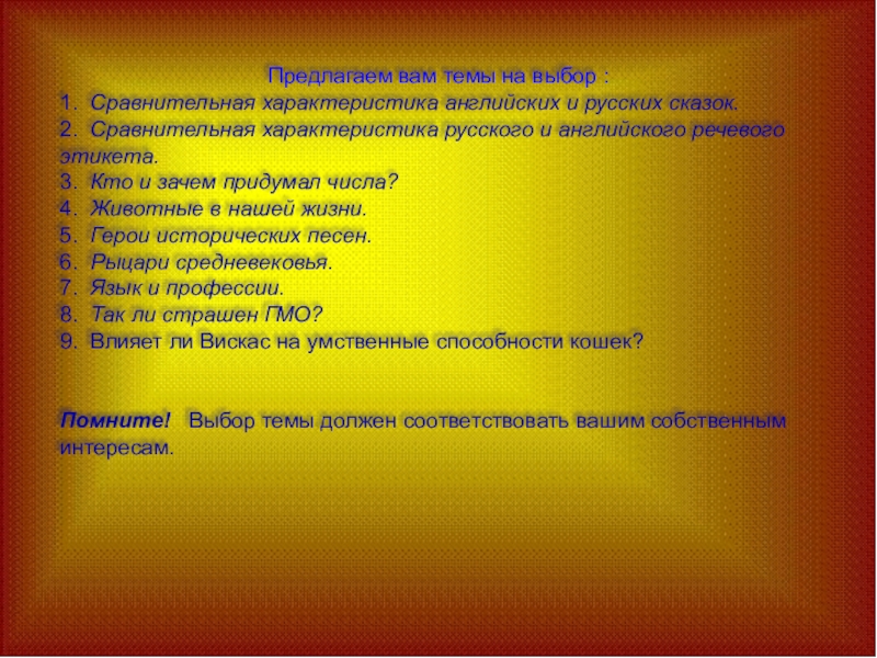 Помните! Выбор темы должен соответствовать вашим собственным интересам.
