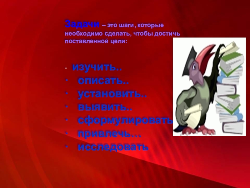 Слайд 9Задачи – это шаги, которые необходимо сделать, чтобы достичь поставленной цели: