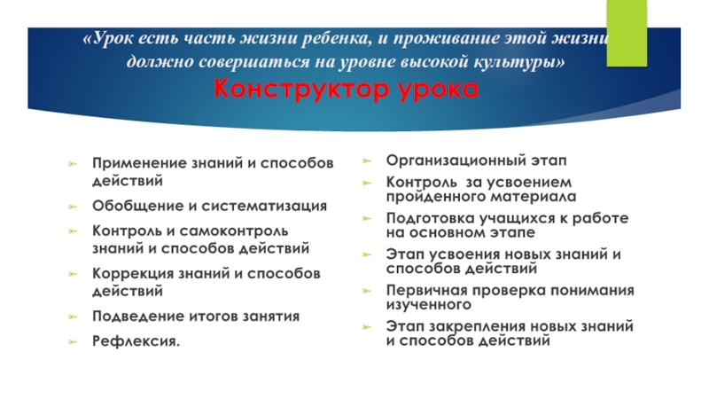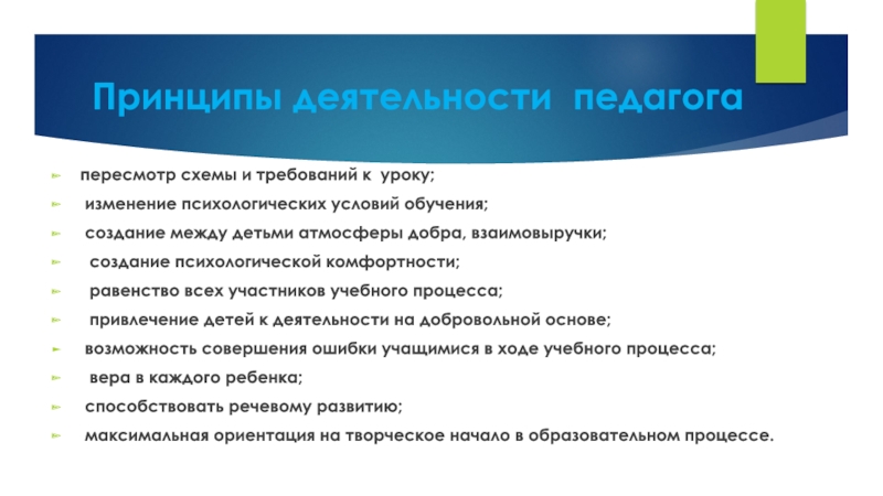 - главной целью урока является развитие каждой личности, в процессе обучения и воспитания;