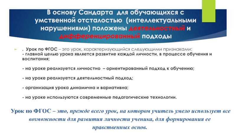 Урок по ФГОС – это, прежде всего урок, на котором учитель умело использует все возможности для развития личности ученика, для формирования ее нравственных основ.