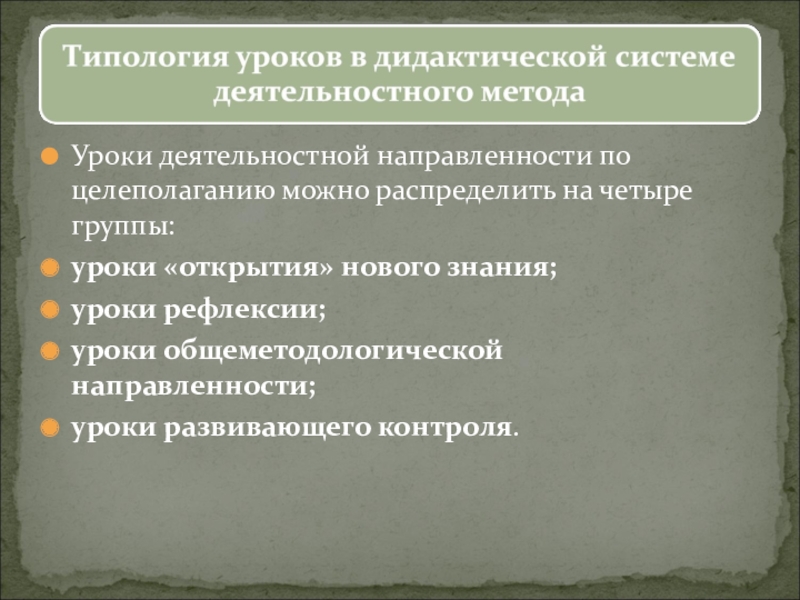 Слайд 5Уроки деятельностной направленности по целеполаганию можно распределить на четыре группы: