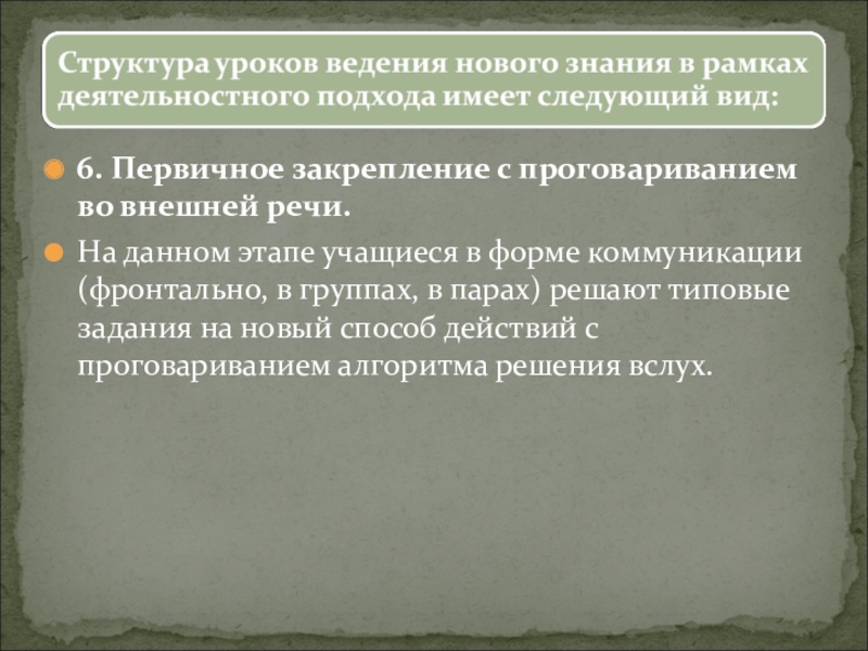 Слайд 186. Первичное закрепление с проговариванием во внешней речи.