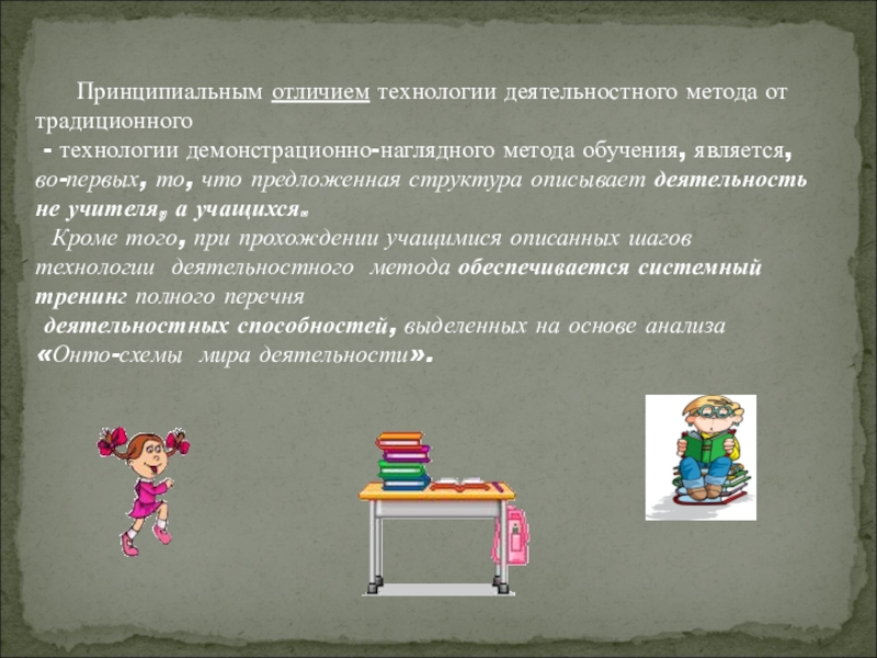 Слайд 23 Принципиальным отличием технологии деятельностного метода от традиционного