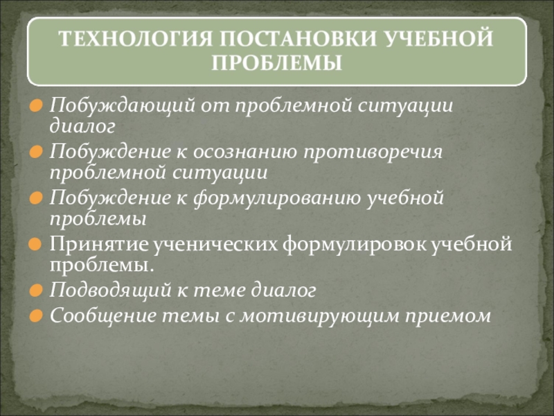 Слайд 7Побуждающий от проблемной ситуации диалог