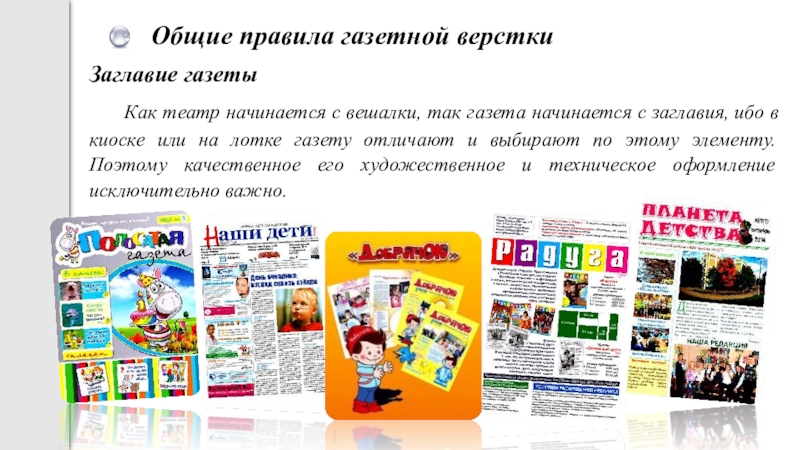 Слайд 11Общие правила газетной верстки
