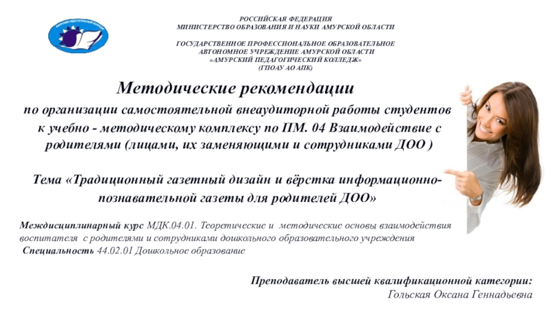 Междисциплинарный курс МДК.04.01. Теоретические и методические основы взаимодействия воспитателя с родителями и сотрудниками дошкольного образовательного учреждения