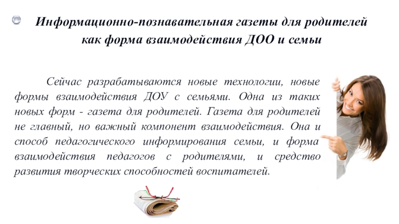Слайд 4 Газета для родителей станет эффективной формой взаимодействия