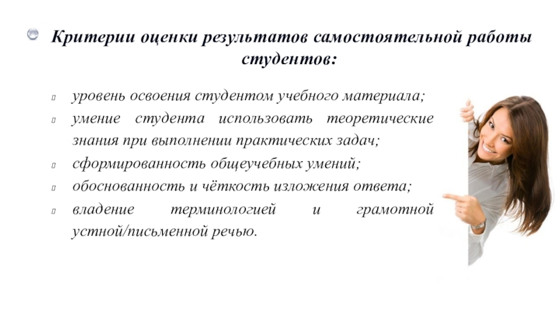Слайд 2Критерии оценки результатов самостоятельной работы студентов: