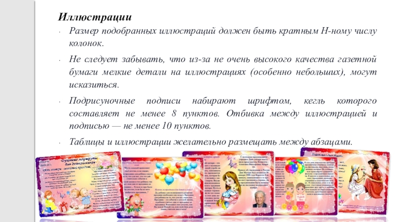 Размер подобранных иллюстраций должен быть кратным Н-ному числу колонок.
