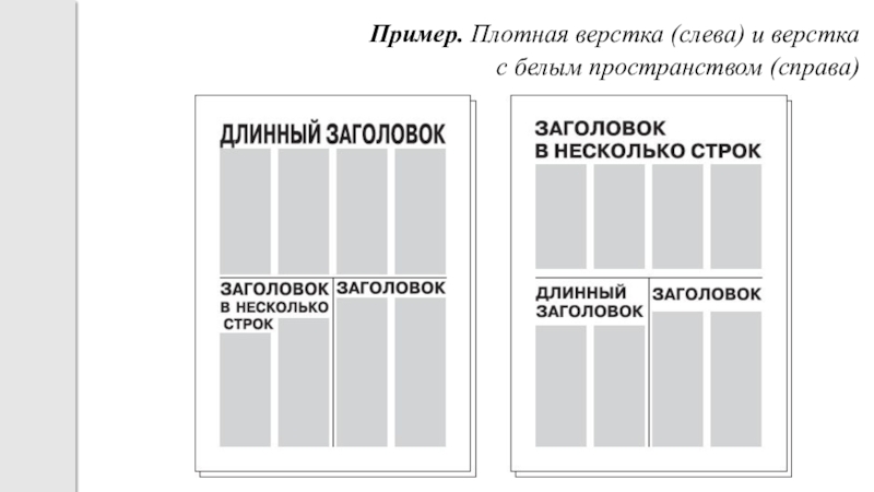 Слайд 17Пример. Плотная верстка (слева) и верстка с белым пространством (справа)