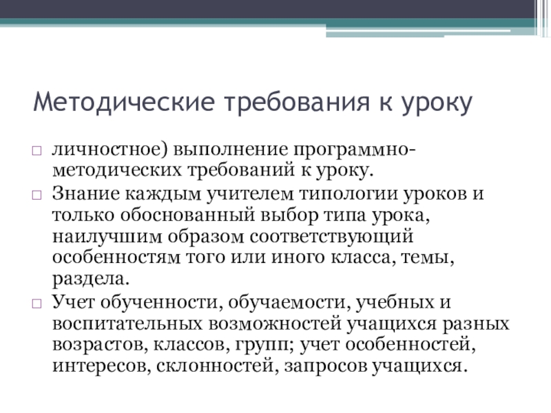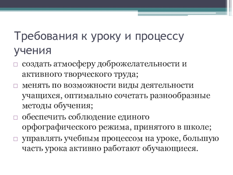 Слайд 7Требования к уроку и процессу учения