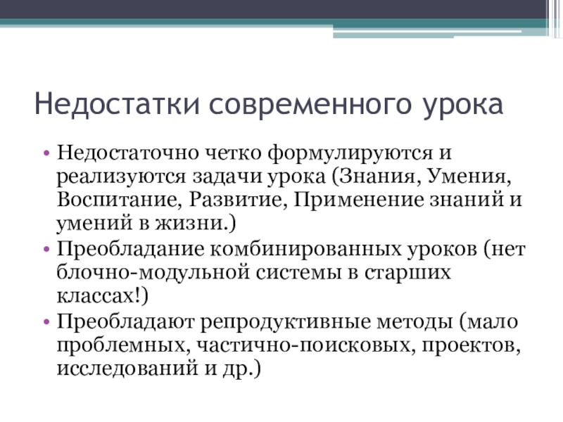Слайд 9Недостатки современного урока