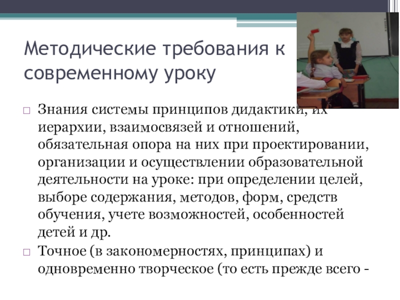 Слайд 5Методические требования к современному уроку