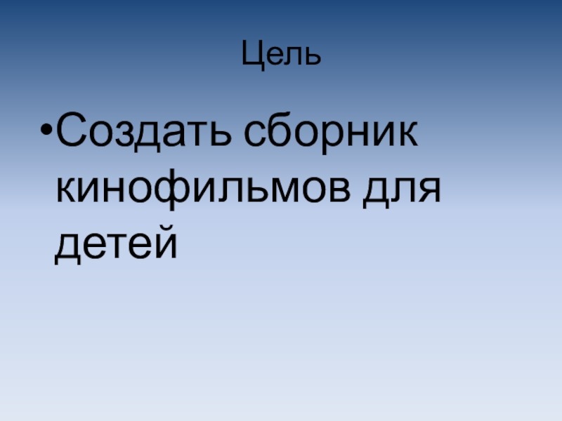 Задачи1.Узнать ,что такое кино.2.Выяснить какие волшебные кинофильмы созданы для детей.3.Прорекламировать наш сборник детям