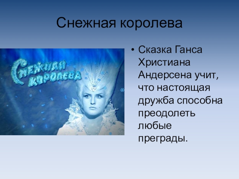 Снежная королеваСказка Ганса Христиана Андерсена учит, что настоящая дружба способна преодолеть любые преграды.