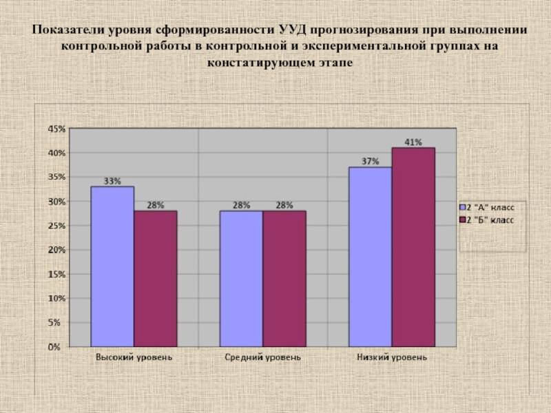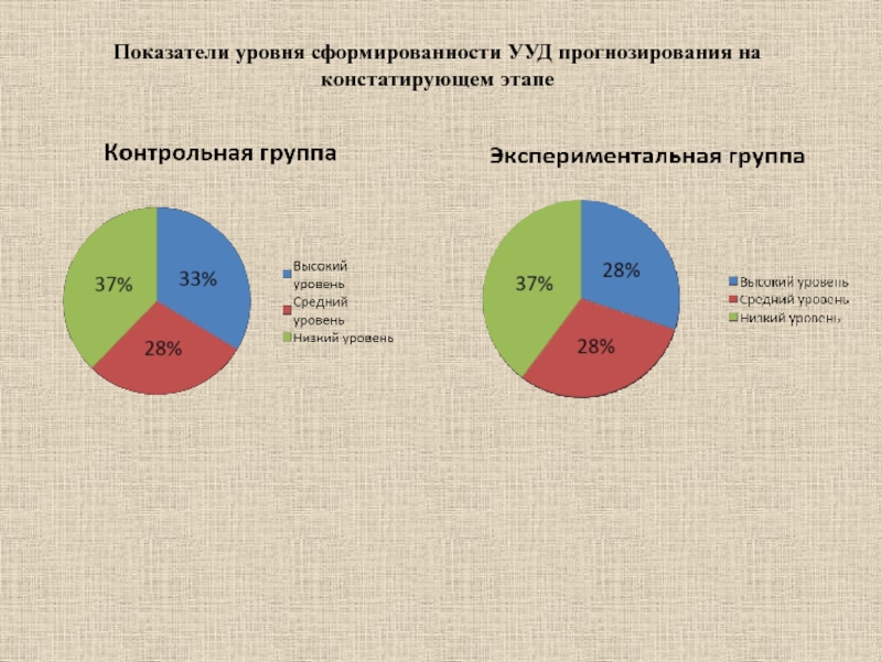 Слайд 17Показатели уровня сформированности УУД прогнозирования на констатирующем этапе