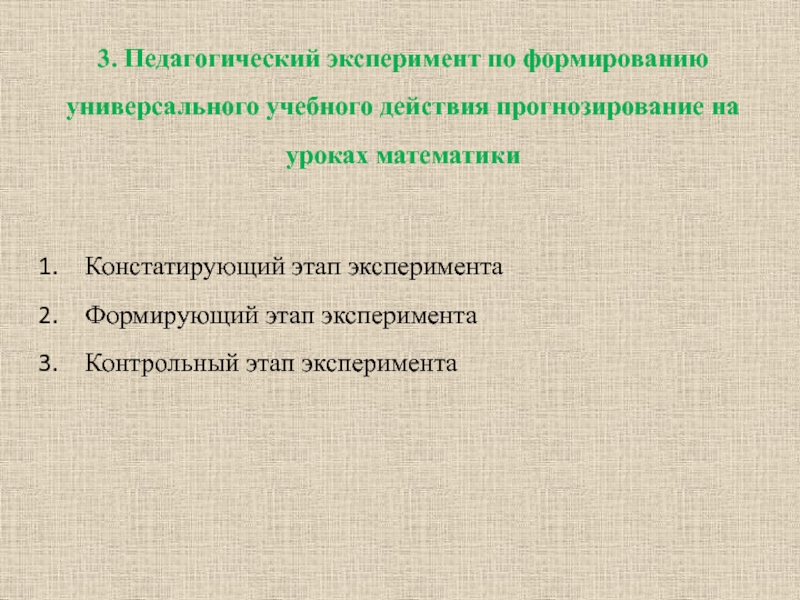 3. Педагогический эксперимент по формированию универсального учебного действия прогнозирование на уроках математики