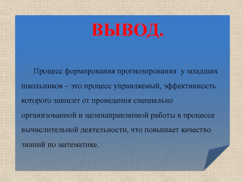Процесс формирования прогнозирования у младших школьников – это процесс управляемый, эффективность