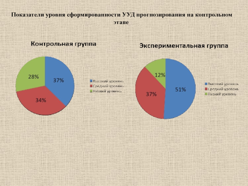 Слайд 18Показатели уровня сформированности УУД прогнозирования на контрольном этапе