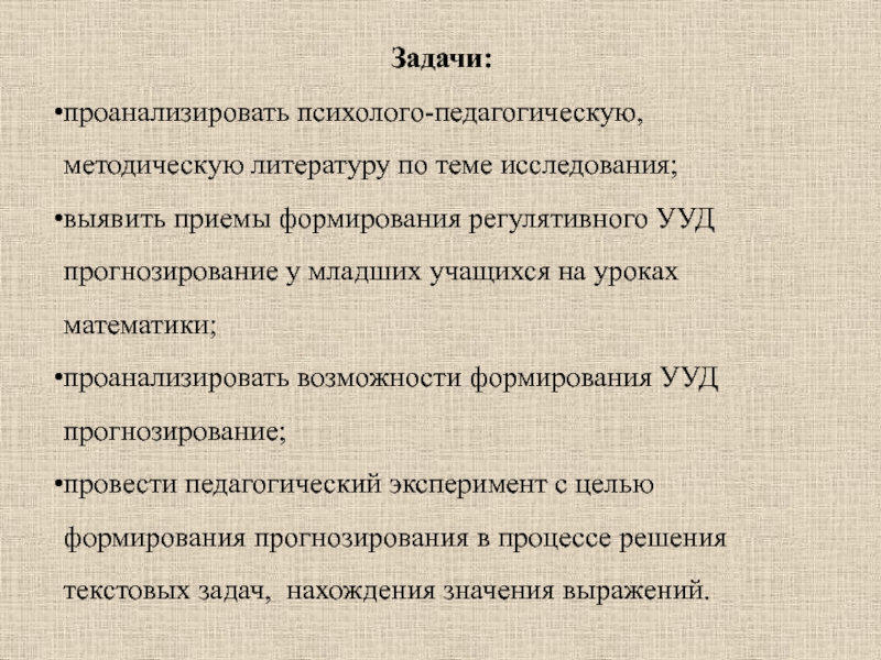 провести педагогический эксперимент с целью формирования прогнозирования в процессе решения текстовых задач, нахождения значения выражений.