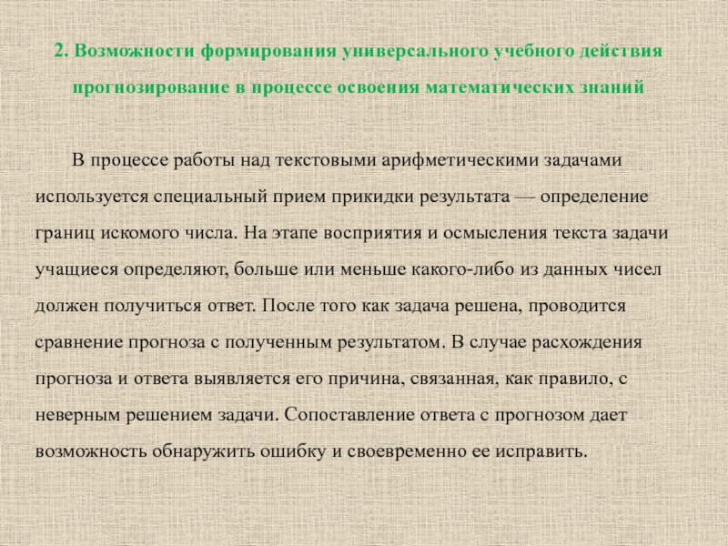 2. Возможности формирования универсального учебного действия прогнозирование в процессе освоения математических знаний