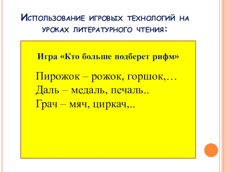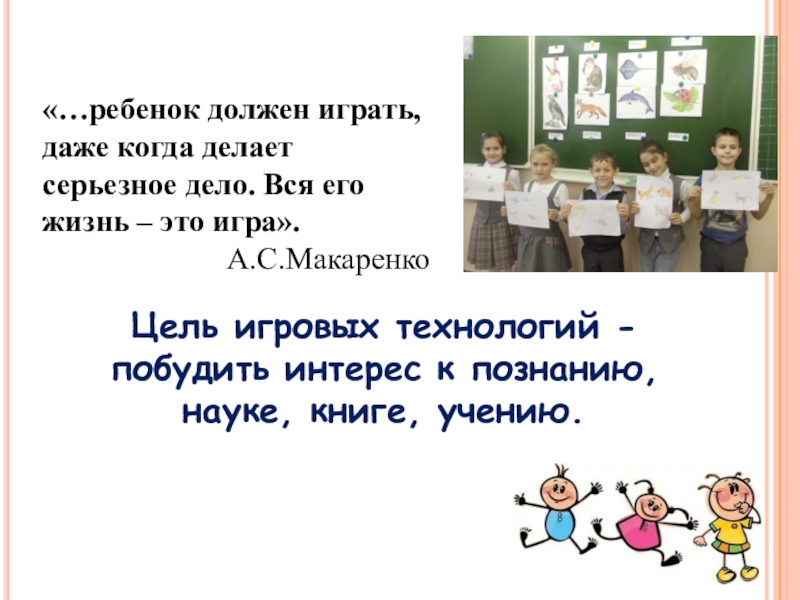 Цель игровых технологий - побудить интерес к познанию, науке, книге, учению.