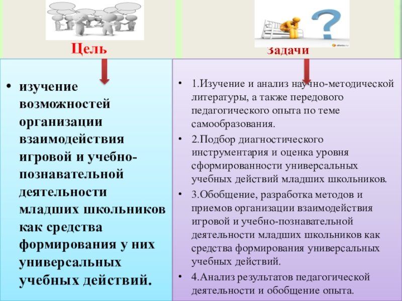 3.Обобщение, разработка методов и приемов организации взаимодействия игровой и учебно-познавательной деятельности младших школьников как средства формирования универсальных учебных действий.
