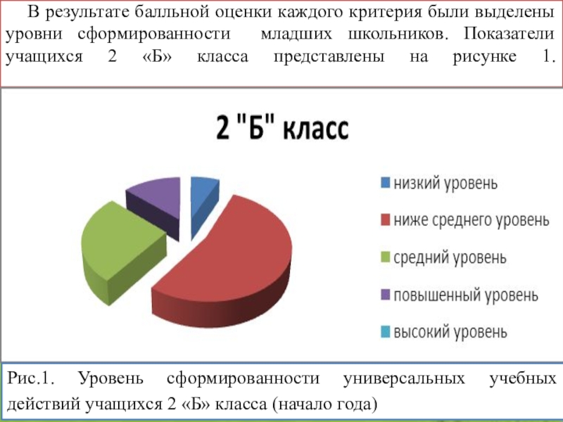 Рис.1. Уровень сформированности универсальных учебных действий учащихся 2 «Б» класса (начало года)