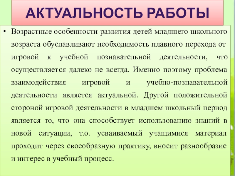 «Взаимодействие игровой и учебно-познавательной деятельности младших школьников в условиях реализации ФГОС НОО»