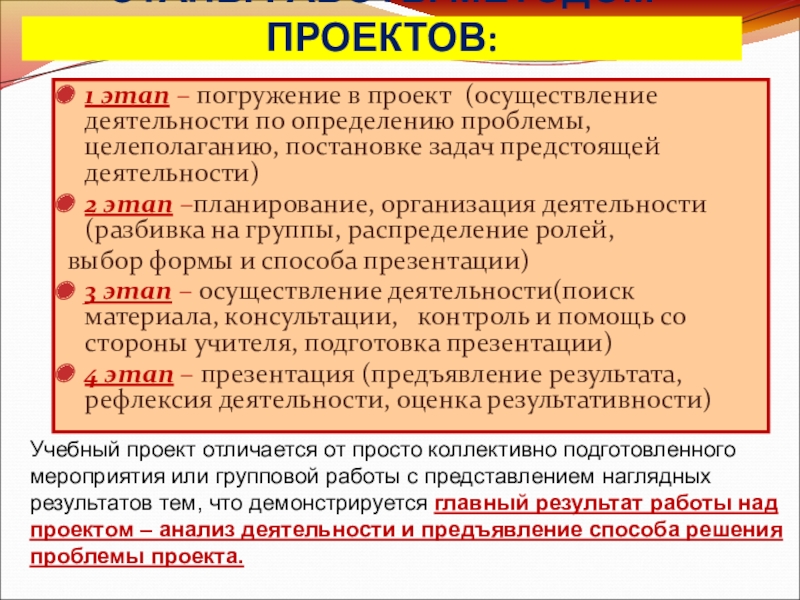 ЭТАПЫ РАБОТЫ МЕТОДОМ ПРОЕКТОВ: