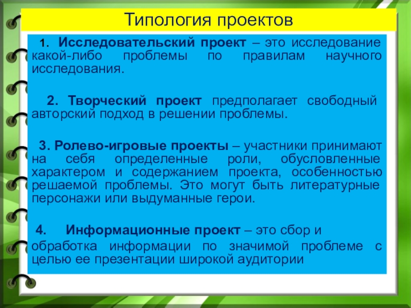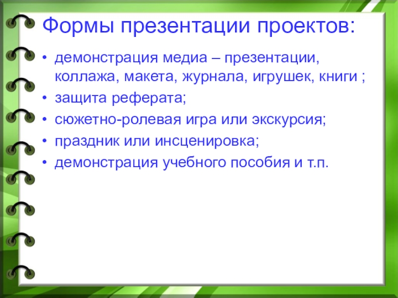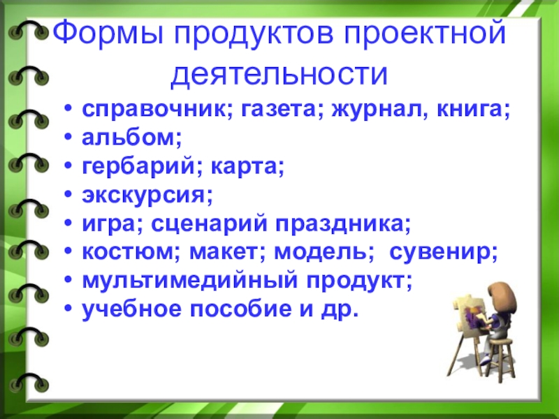 Учебный проект отличается от просто коллективно подготовленного мероприятия или групповой работы с представлением наглядных результатов тем, что демонстрируется главный результат работы над проектом – анализ деятельности и предъявление способа решения проблемы проекта.